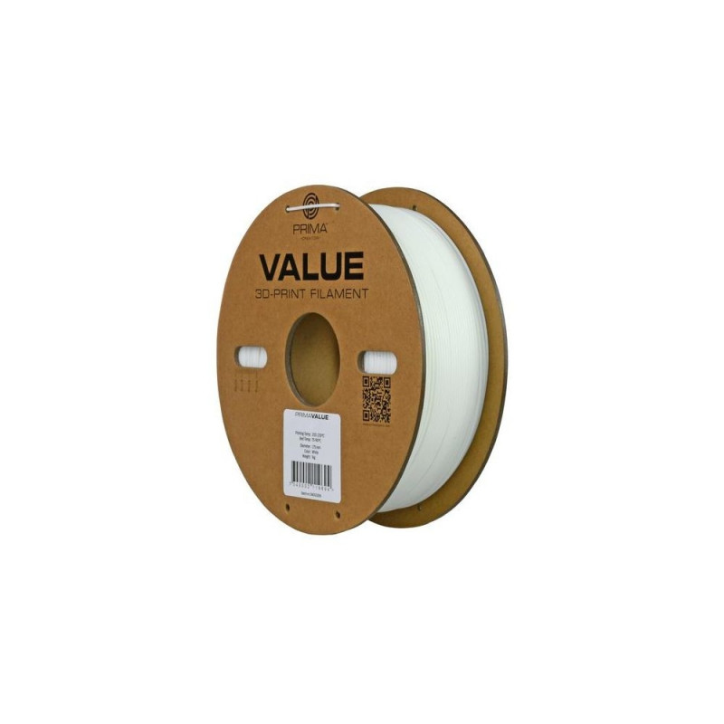 Discover the perfect balanced choice for your 3D prints with PrimaCreator Value ABS filament! Our ABS filament series offers outstanding quality at an unbeatable price, making it the perfect choice for both beginners and experienced enthusiasts.<br><br><b>PrimaValue ABS</b><br>With PrimaCreator Value ABS, you not only get an affordable option, but also high-quality material designed to meet your printing needs. We havent compromised on quality - each spool is carefully manufactured to ensure smooth extrusion and reliable results.<br><br><b>New Packaging</b><br>Our environmental awareness also extends to our packaging. PrimaCreator Value ABS is delivered on a paper spool made from recycled paper, reducing our environmental impact, and providing an elegant and sustainable storage solution for your filament.<br><br><b>Wide Range of Colors</b><br>To suit a variety of projects and needs, PrimaCreator Value ABS offers a wide range of the most popular base colors. Whether you prefer classic colors like black, white, and gray, or want to create colorful and vibrant objects, we have filaments to suit your needs.<br><br><b>High Compatibility</b><br>Moreover, PrimaCreator Value ABS is designed to work smoothly with most 3D printers on the market. Whether you have an entry-level budget model or an advanced professional printer, you can be confident that our ABS filament will provide reliable and high-quality results every time. Value ABS is compatible with printers that are equipped with a heated build plate. For best results we highly recommend that you use PrimaFix for best adhesion.<br><br>Make your next 3D printing experience both affordable and environmentally friendly with PrimaCreator Value ABS filament! With outstanding quality, versatility, and durability, it's the ultimate choice for all your creative projects.3D Prima 12785. Printing material: ABS, Printing colours: White, Print speed: 100 mm/sec. Weight: 1 kg, Depth: 58 mm, Height: 200 mm. Quantity per pack: 1 pc(s), Package width: 210 mm, Package depth: 70 mm