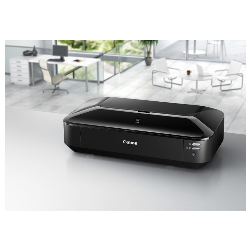 Canon PIXMA iX6850. Trükitehnoloogia: tindiprinter, maksimaalne lahutusvõime: 9600 x 2400 DPI. Maksimaalne trükisuurus: A3+ (330 x 483 mm). Ääristeta trükk. WLAN. Toote värvus: must