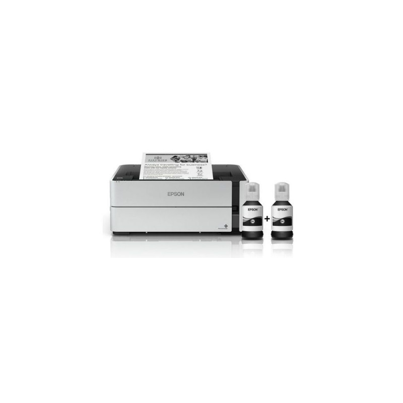 <b>Reduce your printing costs</b><br>The economical EcoTank is fundamentally different to laser printers. It features a large refillable ink tank that you fill with the included ink bottles instead of toner. From the start you have enough ink to print thousands of pages, slashing costs and saving time as you’re not frequently changing toner.<br><br><b>Low cost replacements</b><br>While refills are likely to be few and far between, you'll be able to save over 90% on the cost per page with replacement ink bottles2.<br><br><b>Reliable</b><br>Giving peace of mind, every EcoTank mono printer comes with a one-year/100,000-page warranty.<br><br><b>Save time</b><br>Don't waste time changing supplies - with an ink tank system you can essentially fill it up and forget about it. Printing is fast with no warm-up time and speeds of 20ppm3.<br><br><b>Save energy</b><br>Cut energy usage and reduce overheads with an EcoTank mono printer. It can save up to 95%4 in power consumption compared to mono laser printers.<br><br><b>Efficient business features</b><br>Experience the PrecisionCore printhead that's renowned for its speed, quality, reliability and efficiency. Replace paper less often with the 250-sheet tray and save paper with automatic double-sided printing.<br><br><b>Connectivity solutions</b><br>Scan-to-Cloud and print from anywhere in the office with Wi-Fi connectivity and Epson's free mobile printing apps5. This model has Ethernet for a fast and high-quality connection.Epson EcoTank ET-M1170. Maximum duty cycle: 20000 pages per month. Maximum resolution: 1200 x 2400 DPI. Maximum ISO A-series paper size: A4. Print speed (black, normal quality, A4/US Letter): 39 ppm. Duplex printing. Wi-Fi. Product colour: Grey