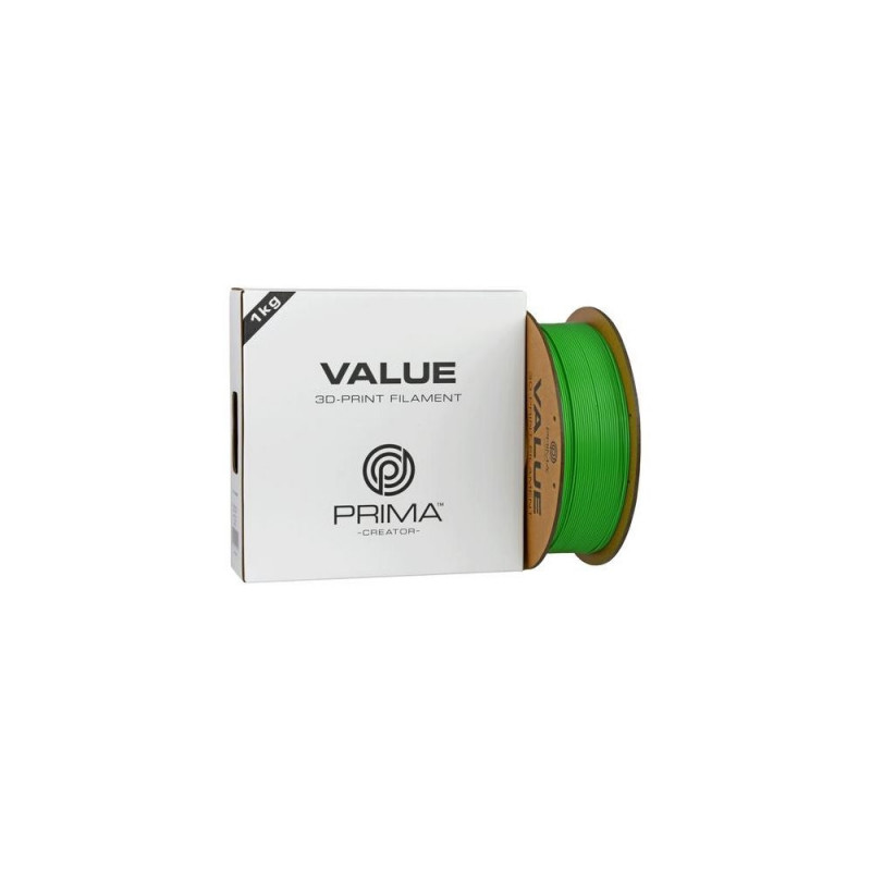 Discover the perfect balanced choice for your 3D prints with PrimaCreator Value ABS filament! Our ABS filament series offers outstanding quality at an unbeatable price, making it the perfect choice for both beginners and experienced enthusiasts.<br><br><b>PrimaValue ABS</b><br>With PrimaCreator Value ABS, you not only get an affordable option, but also high-quality material designed to meet your printing needs. We havent compromised on quality - each spool is carefully manufactured to ensure smooth extrusion and reliable results.<br><br><b>New Packaging</b><br>Our environmental awareness also extends to our packaging. PrimaCreator Value ABS is delivered on a paper spool made from recycled paper, reducing our environmental impact, and providing an elegant and sustainable storage solution for your filament.<br><br><b>Wide Range of Colors</b><br>To suit a variety of projects and needs, PrimaCreator Value ABS offers a wide range of the most popular base colors. Whether you prefer classic colors like black, white, and gray, or want to create colorful and vibrant objects, we have filaments to suit your needs.<br><br><b>High Compatibility</b><br>Moreover, PrimaCreator Value ABS is designed to work smoothly with most 3D printers on the market. Whether you have an entry-level budget model or an advanced professional printer, you can be confident that our ABS filament will provide reliable and high-quality results every time. Value ABS is compatible with printers that are equipped with a heated build plate. For best results we highly recommend that you use PrimaFix for best adhesion.<br><br>Make your next 3D printing experience both affordable and environmentally friendly with PrimaCreator Value ABS filament! With outstanding quality, versatility, and durability, it's the ultimate choice for all your creative projects.3D Prima 12784. Printing material: ABS, Printing colours: Green, Print speed: 100 mm/sec. Weight: 1 kg, Depth: 58 mm, Height: 200 mm. Quantity per pack: 1 pc(s), Package width: 210 mm, Package depth: 70 mm