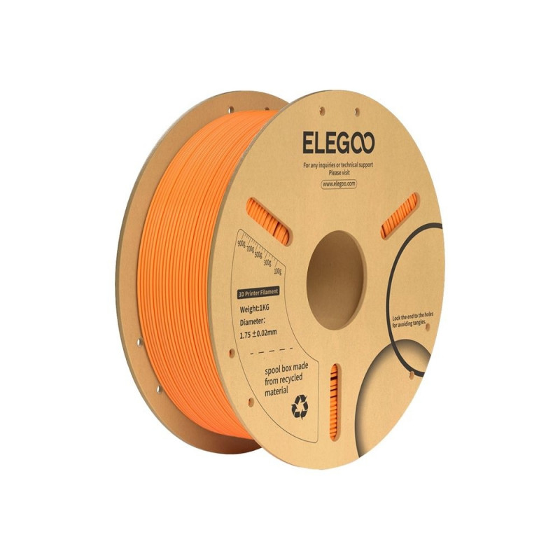 ELEGOO oranži värvi filament on suurepärane valik neile, kes otsivad intensiivseid ja hästi küllastunud toone. Materjalil on sile pind ning see tagab kõrge printimistäpsuse, sobides hästi nii prototüüpide kui ka dekoratsioonide valmistamiseks. Filament põhineb PLA+ (polülaktaat pluss – taimset päritolu biolagunev materjal, mida on rikastatud vastupidavust suurendavate lisanditega). Rullis on 1 kg filament.