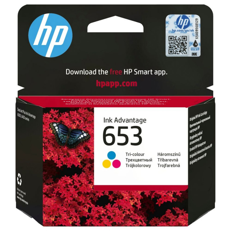 HP 653 tsüaan/magenta/kollane originaal Advantage tindikassett. Värvilise tindi tüüp: värvainepõhine tint, tindikasseti maht: standardtootlikkus, värvilise tindi lehetootlus: 200 lehekülge, värvilise tindi maht: 5 ml, trükivärvid: tsüaan, magenta, kollane, kogus pakis: 1 tk