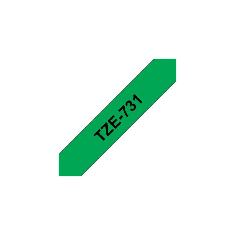 Compatible with a wide range of Brother’s P-touch printers, this genuine laminated TZe-731 labelling tape cassette is especially versatile thanks to its easy-to-read black and Green colour – so it comes in useful around the home, office and in other workplaces.Brother Laminated tape 12mm. Label colour: Black on green, Tape type: TZe, Product colour: Green. Tape width: 1.2 cm, Tape length: 8 m, Width: 17 mm. Pallet gross height: 16.2 cm, Master (outer) cases per pallet: 36 pc(s), Layers per pallet: 6 pc(s). Tape size: 1.2 cm