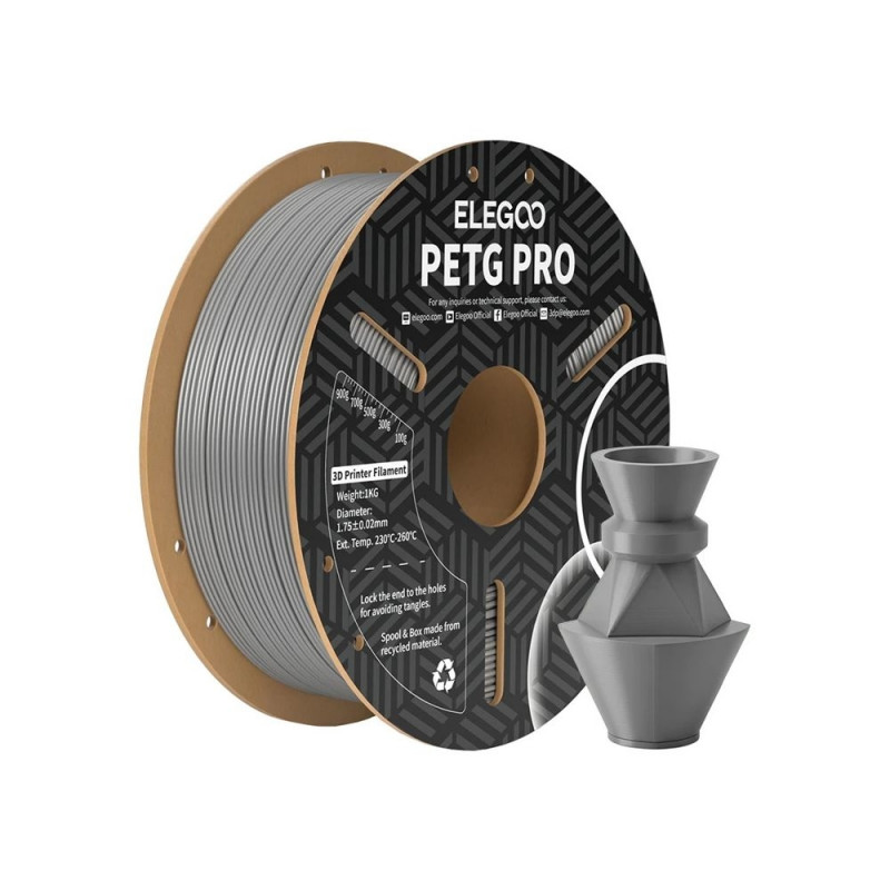 ELEGOO PETG Pro filament on suurepärane valik neile, kes otsivad materjali, millel on kõrge mehaaniline ja termiline vastupidavus, kuid mis on samas lihtsasti prinditav. See tagab erakordse vastupidavuse, väikese deformatsioonitundlikkuse ja suurepärase kihi nakkumise, muutes selle ideaalseks tehniliste komponentide, kasutatavate prototüüpide ja tugevat kasutust taluvate detailide loomiseks.