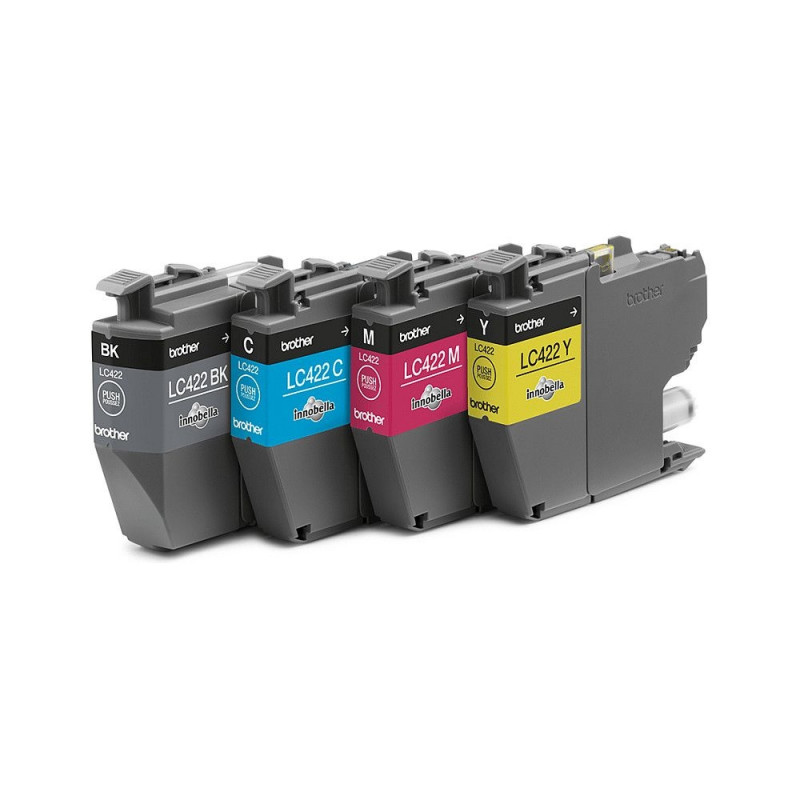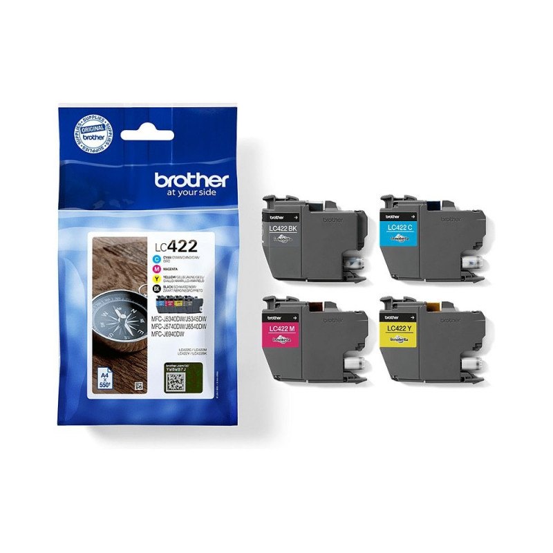 Brother LC422VAL. Tarne tüüp: Mitmepakk, värvilise tindi lehekülgede tootlus: 550 lehekülge, trükivärvid: must, tsüaan, magenta, kollane, kogus pakis: 4 tk, musta tindi lehekülgede tootlus: 550 lehekülge