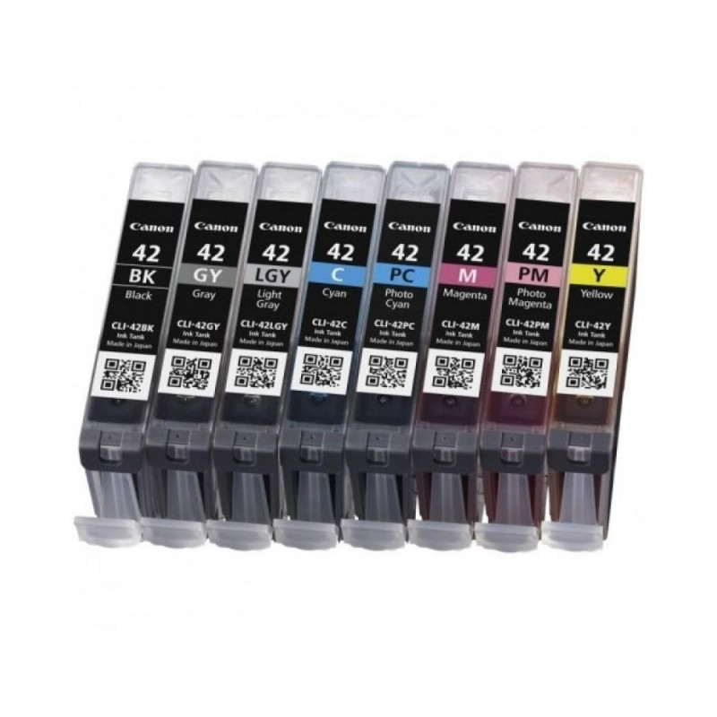 The Canon Ink CLI-42 Multipack includes eight ink tanks in black, gray, light gray, cyan, magenta, yellow, photo cyan, and photo magenta, each with a capacity of 13 ml. It is designed for use with compatible Canon printers to produce high-quality color and black-and-white prints.Osta kohe, viimased eksemplarid laos!