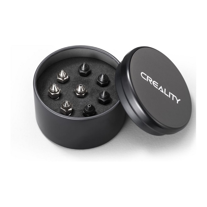 Creality 4008030052. Tüüp: Otsikute varukomplekt, seadme ühilduvus: 3D-printer, brändi ühilduvus: Creality 3D, ühilduvus: K1, K1 Max, CR-M4, toote värvus: must, hõbe. Pakis: 8 tk