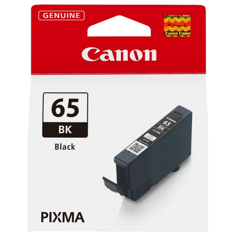 Canon CLI-65BK must tint. Musta tindi tüüp: värvainepõhine tint, musta tindi maht: 12,6 ml, tarnetüüp: üksikpakend, prindivärvid: must, kogus pakis: 1 tk, musta tindi leheküljetootlus: 860 lehekülge.
