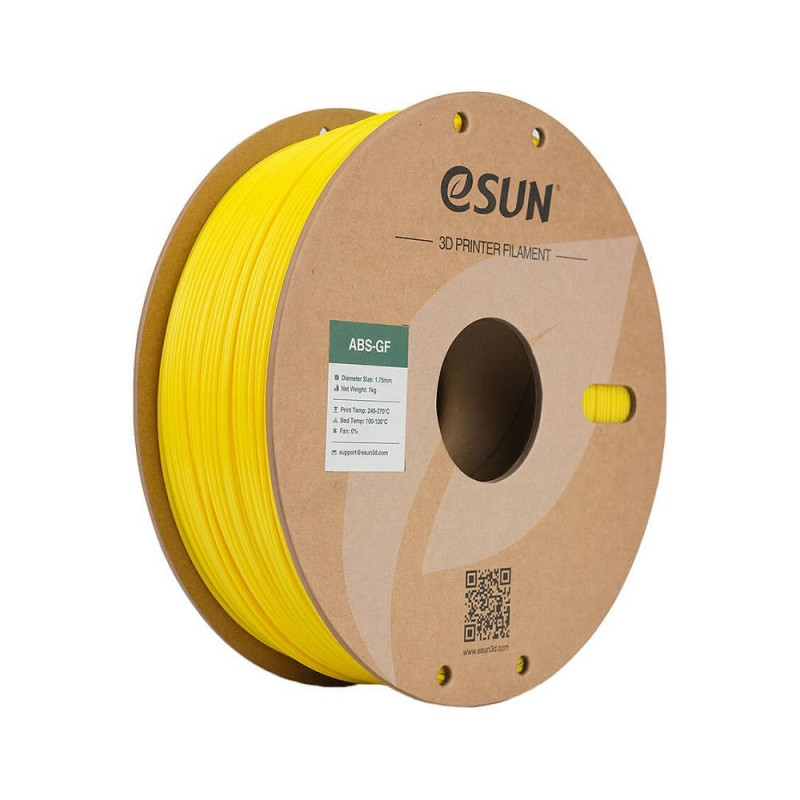 eSUN ABS-GF. Trükivärvid: Kollane, Trükikiirus (meetriline): 200 mm/sek, Löögitugevus: 5,6 kJ/m². Kaal: 1 kg, Tihedus: 1,07 kg/m³, Läbimõõt: 1,75 mm. Kogus pakis: 1 tk
