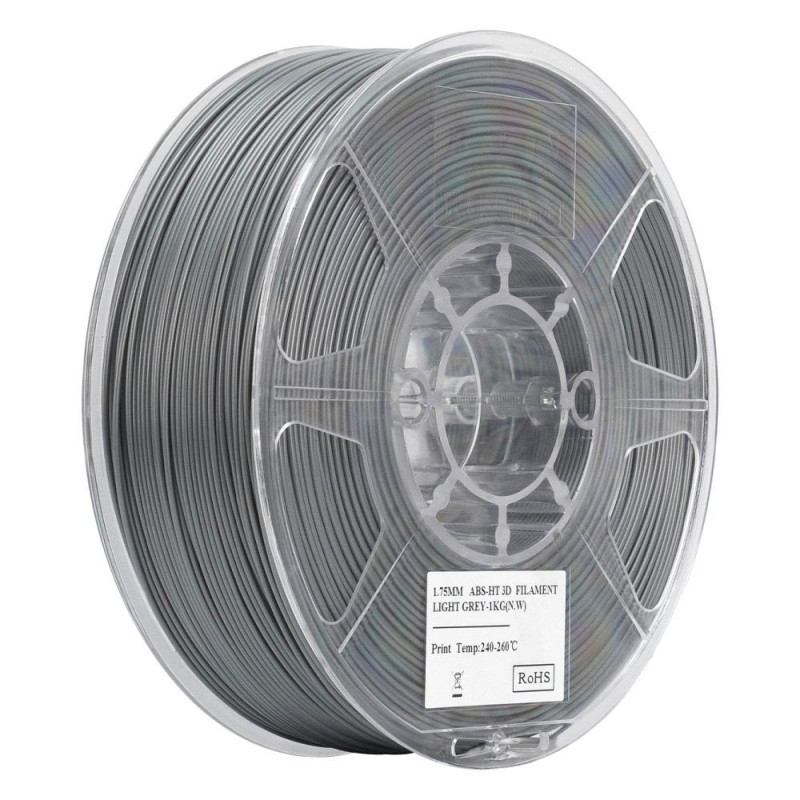 eSUN EABS-HT 1.75mm LIGHT GREY 1kg. Printimismaterjal: polüpiimhape (PLA), Trükivärvid: kollane, Printimiskiirus (meetriline): 200 mm/sek. Kaal: 1 kg, Läbimõõt: 1,75 mm. Kogus pakendis: 1 tk.