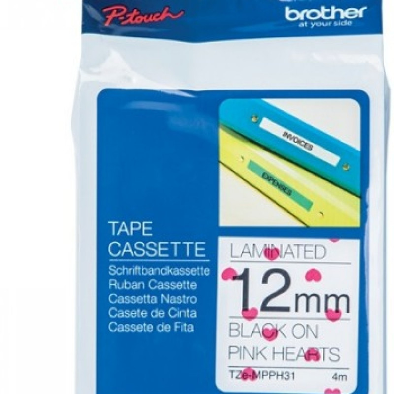 BROTHER TZEMPPH31 12 BLACK ON PINK HEARTS