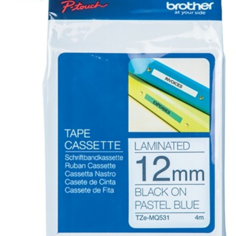 BROTHER TZEMQ531 12 BLACK ON PASTEL BLUE