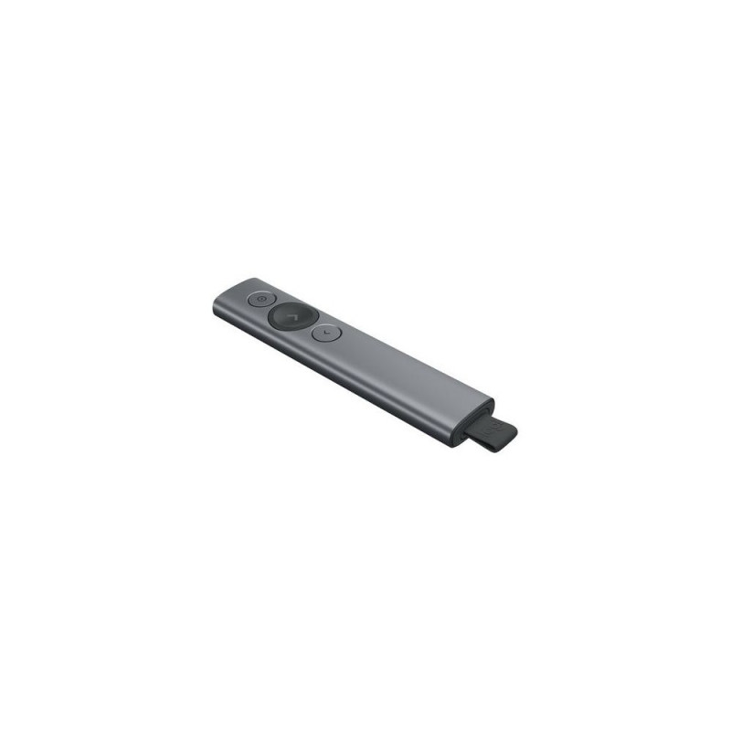 <br />Logitech Spotlight. Wireless receiver interface: USB, Wireless technology: Bluetooth/RF, Receiver type: Mini receiver. Product colour: Aluminium, Black, Presenter functions: Laser pointer, Remote control, Material: Aluminium, Plastic. Battery technology: Lithium Polymer (LiPo), Battery capacity: 80 mAh, Battery life: 3 month(s). Mac operating systems supported: MacOS. Receiver width: 1.72 cm, Receiver depth: 4.04 cm, Receiver height: 6.8 mm