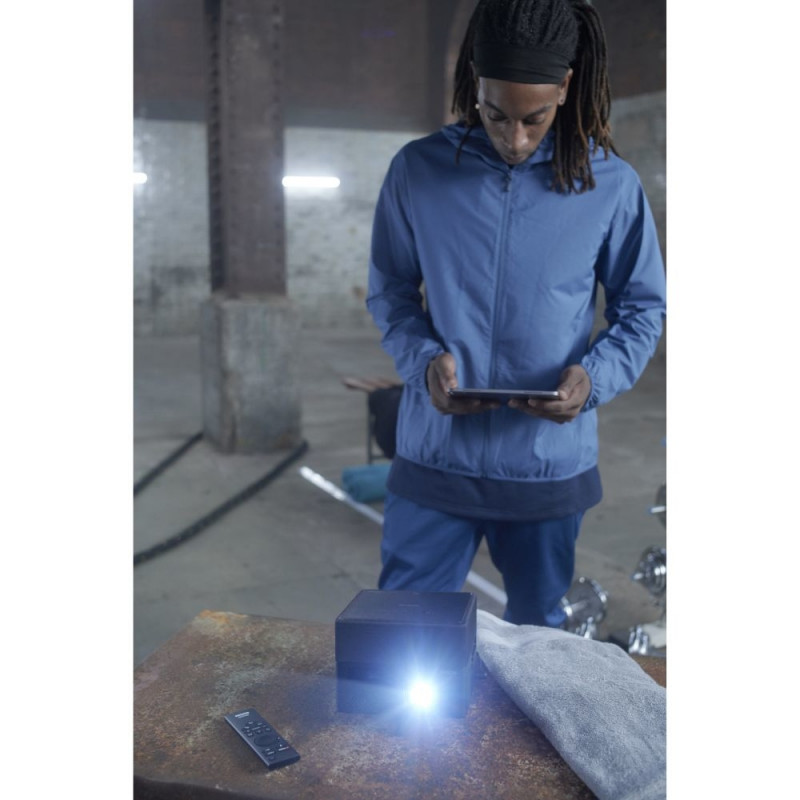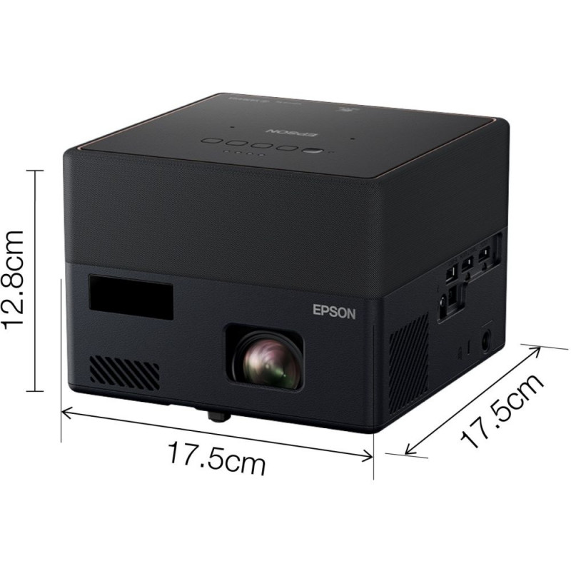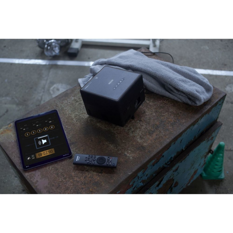 Epson EF-12. Projektori heledus: 1000 ANSI luumenit, projektsioonitehnoloogia: 3LCD, projektori loomulik lahutusvõime: 1080p (1920x1080). Valgusallika tüüp: laser, valgusallika tööiga: 12 000 tundi. Fikseeritud fookuskaugus: 13,9 mm, projektsioonisuhe: 1,00 – 1,00:1. Videotöötlus: 10 bitti, video värvirežiimid: kino, dünaamiline, loomulik, hele kino, elav. Müratase: 27 dB, müratase (energiasäästurežiimis): 22 dB, päritoluriik: Filipiinid.