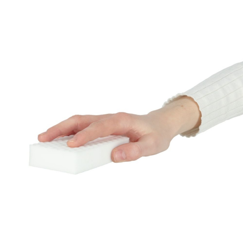 Käsna kõrge tõhusus tuleneb selle õrnadest abrasiivsetest omadustest. See kulub ära, kuna see puhastab nagu kustutuskumm.