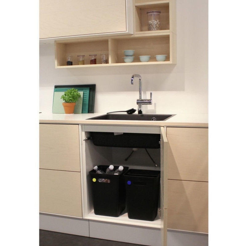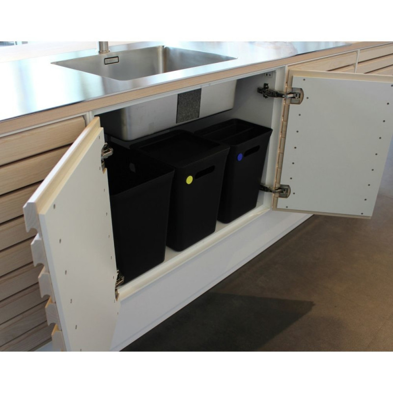 Prügikast Aved?re kaasaegsest jäätmekäitlustoodete sarjast. Mugav käepide prügikasti kandmiseks. Prügikasti esiküljel on väikesed avad värvilise märgise paigutamiseks – märgise värv näitab, millist tüüpi jäätmeid prügikasti panna.