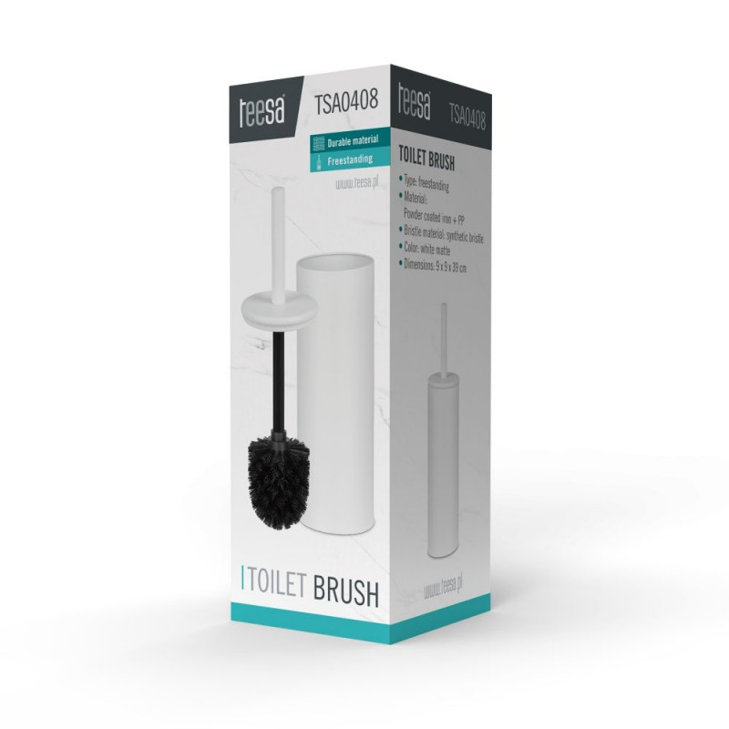 Praktiline WC-hari elegantses valges matis värvitoonis, mis ühendab funktsionaalsuse ja kaasaegse disaini. Vabaltseisev konstruktsioon võimaldab harja mugavalt vannitoas paigutada, samas kui kvaliteetsed materjalid – pulbervärvitud raud ja PP-plastik – tagavad vastupidavuse ning lihtsa puhastamise, pakkudes hügieeni ja mugavust igapäevaseks kasutamiseks.