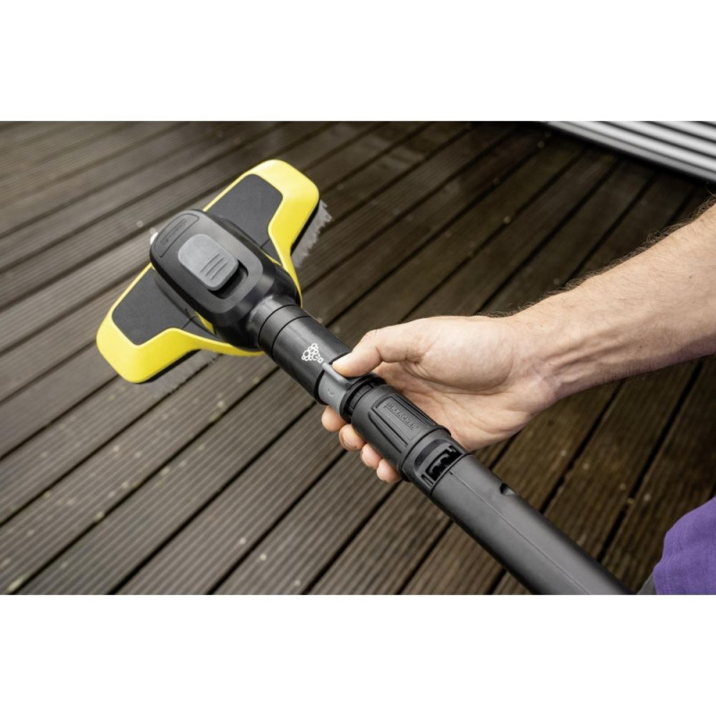 See puhastushari on varustatud ka integreeritud veevoolu süsteemiga, mis võimaldab puhastada pindu veelgi tõhusamalt. Veevoolu saab reguleerida vastavalt vajadusele, tagades optimaalse veekasutuse ja puhastustulemuse. BRUSH WB 7 PLUS on lihtne ühendada tavalise aiavoolikuga, muutes selle kasutamise eriti mugavaks ja praktiliseks.