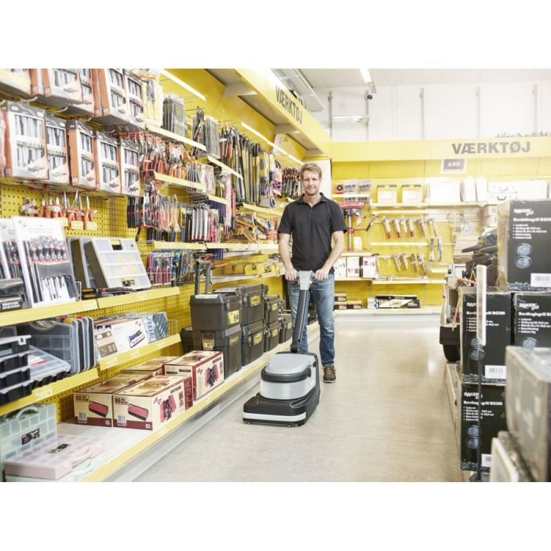 Tõhus: pühkimine, küürimine ja imemine ühe korraga. - Kõrge puhastusvõimekus: 34 cm laiune rullhari või mikrokiudrull - Tootlik: 6-liitrine puhta ja musta vee paak võimaldab kuni 40-minutilist tööaega ilma täitmiseta. - Võimas: Nilfiski 36 V liitiumakutehnoloogia - Lihtne kasutada: ergonoomiliselt kujundatud lükkesanga saab reguleerida erinevatesse asenditesse, vabalt liigutada või hoiustamiseks kokku panna. - Intuitiivne ja iseenesestmõistetav: informatiivne ekraan lükkesangal. - Lihtne kasutamine: OneTouch-funktsioon aktiveerib kõik eelseadistatud funktsioonid ja puutesensorid lükkesangal tagavad lihtsa kasutamise. - Puhastamine ilma katkestusteta: kaks puhta vee seadistust saab muuta töö ajal. - Ohutu: kuivkäimise kaitse ja hoiatussignaal, kui paak on tühi. - Mugav: tänu kompaktsele disainile ja väikesele kaalule on seda lihtne transportida ja ümber paigutada. - Lisatarvikud: mikrokiudrull täiendab rakendusvõimalusi (ilma pühkimisfunktsioonita).