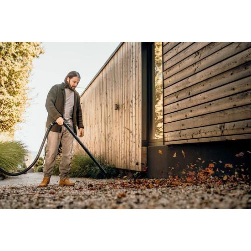 A powerful yet energy-efficient solution for cleaning in and around the house. The WD 5 V-25/5/22 wet and dry vacuum cleaner makes for an excellent choice due to the optimum cleaning results it provides on dry, wet, fine or coarse dirt with a power consumption of 1100 watts. The device comes with a robust 25-litre plastic container, a 5-metre cord, a 2.2-metre-long suction hose with a removable, electrostatically protected handle, a switchable floor nozzle, a flat pleated filter and a fleece filter bag. The flat pleated filter is suitable for non-stop wet and dry vacuuming without having to change the filter. Thanks to patented filter removal technology, the filter can be removed in a matter of seconds while avoiding any contact with dirt. The filter cleaning button can be pressed to efficiently clean the filter and restore the suction power. The removable handle allows accessories to be attached directly to the suction hose. The hose can be safely secured at the device head for space-saving storage. The parking position provided on the bumper allows the tubes and floor nozzle to also be stored quickly and conveniently when taking a short break from work.Kärcher WD 5 V-25/5/22. Cleaning type: Dry&wet, Product colour: Black, Yellow, Filter material: Fleece. Capacity: 25 L, Cable length: 5 m, Hose length: 2.2 m. Power source: AC, Input power: 1100 W, AC input voltage: 220-240 V. Width: 382 mm, Depth: 418 mm, Height: 653 mm