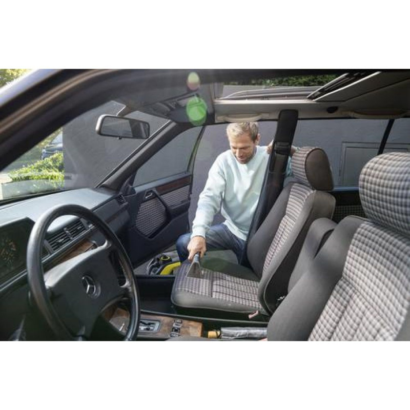 Fibre-deep cleaning with maximum freedom of movement: The SE 3-18 Compact spray extraction cleaner cleans textile surfaces thoroughly and residue-free. Thanks to the compact design, the device is not only handy but can also be used when there's no power outlet nearby, due to the 18 V Kärcher Battery Power battery (not included in the scope of supply). This allows the vehicle interior to be cleaned in just 12 to 24 minutes. You thus remove dirt from car seats, floor mats and the boot as well as garden furniture and upholstery in an instant – just as powerfully as with our corded spray extraction cleaners. The long and flexible suction hose with an inside cleaning agent hose also guarantees great convenience and flexibility, even in difficult-to-access places. Even after cleaning, the spray extraction cleaner will impress you with its hygienic flush function, which removes dirt from the device and hose, and thus prevents bacteria and odour formation. Totally in line with the motto of 'clean vehicle, clean cleaning device'.<br><br><b>APPLICATION AREAS</b><br>- Cleaning deep into the fibres of textile surfaces like car seats, floor mats and the boot<br>- Cleaning deep into the fibres of textile surfaces like the upholstery of seating and garden furniture<br>- Cleaning deep into the fibres of textile surfaces like upholstery and fabric covers<br>- Spot cleaning of small carpets and rugsKärcher SE 3-18 Compact. Cleaning surfaces: Carpet, Fresh water tank capacity: 1.9 L, Dirty water tank capacity: 1.2 L. Product colour: Black, Yellow, Hose length: 1.9 m. Weight: 3.6 kg. Package weight: 5.1 kg