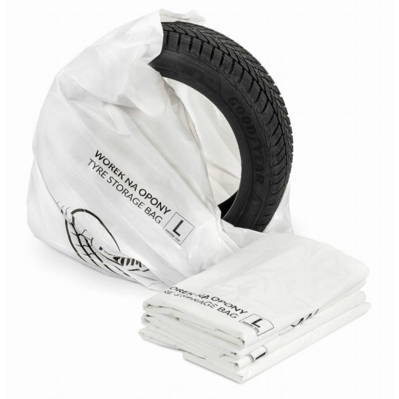 Valged kilekotid suurusega 1000 x 1000 mm kaitsevad rehve ladustamise ajal ilmastikutingimuste eest.