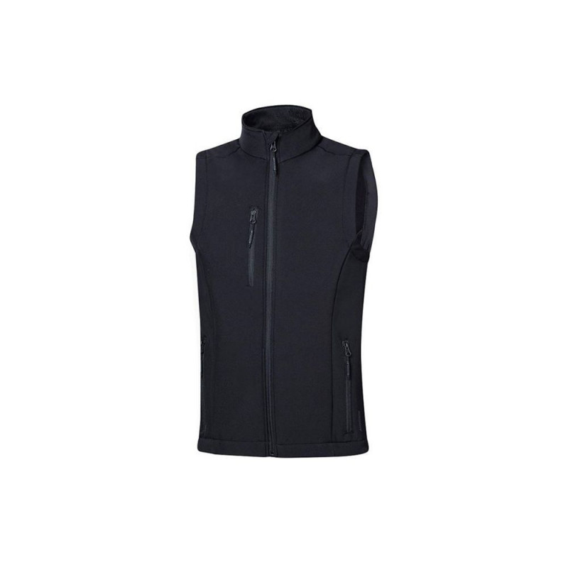 Disainilt on vest minimalistlik ja stiilne – must värv sobib hästi erinevate riietega ning annab professionaalse välimuse. Vesti esiküljel on täispikk tõmblukk, mis võimaldab hõlpsat selga panemist ja äravõtmist. Praktilisust lisavad lukuga taskud, kuhu saab turvaliselt paigutada väiksemaid esemeid, näiteks võtmeid, mobiiltelefoni või tööriistu. Kõrge krae kaitseb kaela tuule eest ning elastsed käeaugud tagavad hea istuvuse.