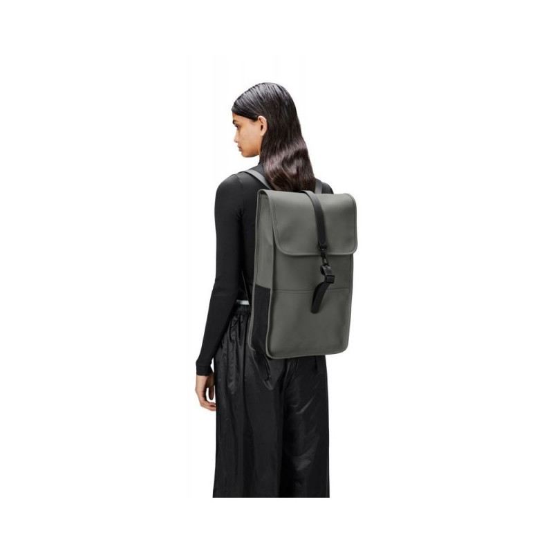 Rains Backpack Gray W3 13000 13 Properties: The silhouette of the backpack is characterized by a prominent flap and a central strap fastened with a carabiner. This clean and always modern waterproof backpack has an internal laptop sleeve, a spaciousOsta kohe, viimased eksemplarid laos!