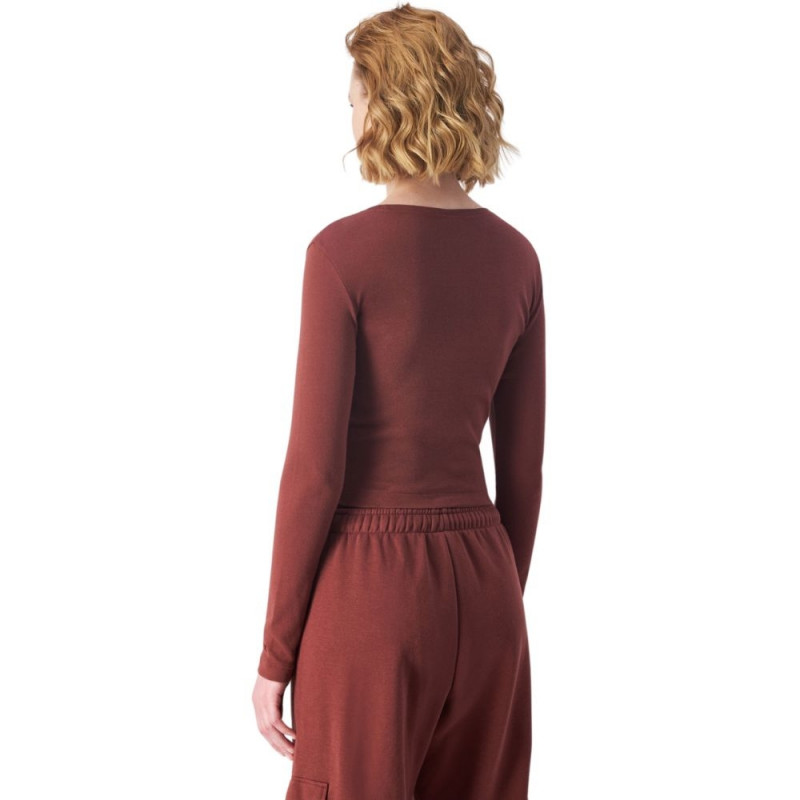 Koszulka damska z długimi rękawami Champion sprawdzi się na co dzień. Dopasowany, krótszy krój z zawijanym przodem. Koszulkę uszyto z bawełnianych włókien.