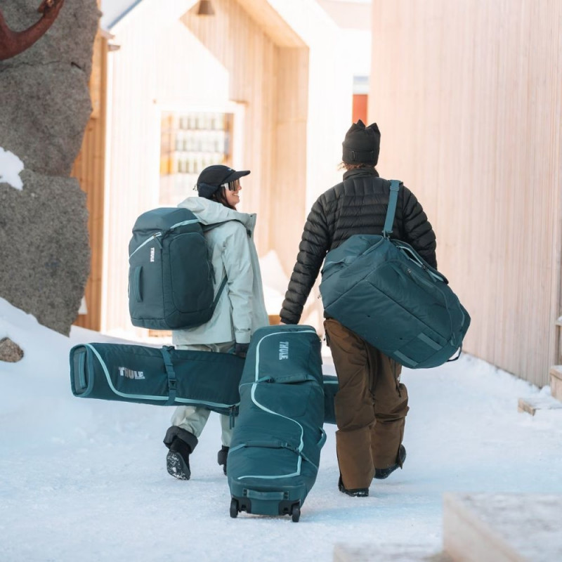 Sobib suusa- ja lumelauasaabastele kuni suuruseni Mondopoint 30.5 / US 13 / UK 12 / EU 47 Eraldi sahtel suusa- või lumelauasaabaste jaoks koos seisumatiga saabaste vahetamiseks ja jalad kuivana hoidmiseks Eraldi sahtel kõigi oluliste asjade jaoks, mida hommikul viimasena ja päeva lõpus esimesena kanda – kiiver, prillid, kindad, buffid, suusapass Pagasi läbilaskerihm kinnitab reisikoti Thule rullsuusakoti külge, et seda lennujaamas hõlpsalt transportida Mahukas otsatasku üleriiete või suusajärgsete vabaajariiete jaoks Eemaldatav kuivkott hoiab lisakihid käepärast või hoiab päeva lõpus märga varustust Polsterdatud prillitasku kaitseb läätsi ja aitab prille kuivana hoida Väline lukuga tasku rahakoti või võtmete hõlpsaks kättesaamiseks Lisataskud päikesekreemi, kätesoojendite, toitumise ja muude väiksemate esemete jaoks Polsterdatud õlarihm mugavaks kandmiseks