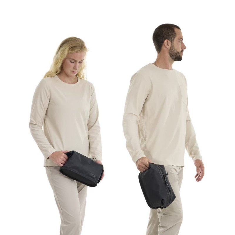 Eemaldatav 3-1-1 kott: Vastab TSA vedelikueeskirjadele hõlpsaks lennureisimiseks. Lai ja struktureeritud ava: Selge vaade ja lihtne juurdepääs olulistele asjadele. Riputusrihm: Mugav riputamiseks saabumisel, hoiustatav, kui ei kasutata. Lihtsalt puhastatav sisemus: Kaetud sisemus muudab mahavalgunud vedeliku kergesti ära pühkimise. Pikendatavad küljed: Reguleeritav suurema ruumi või kompaktse suuruse saavutamiseks. Sisemised taskud: Kaks väikest taskut organiseeritud hoiustamiseks. Vastupidavad lukud ja Hypalon põhi: Turvaline, lekkekindel disain tugeva alusega. Vahatatud, veekindel kangas: 100% taaskasutatud, tõrjub niiskust, mustust ja plekke, vaba kahjulikest PFC-dest.