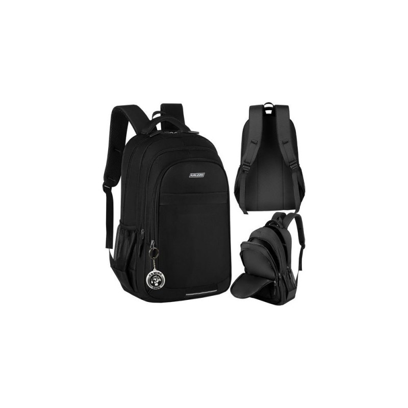 Made of durable OXFORD 600D material , which is characterized by high resistance to mechanical damage and weather conditions . The interior of the backpack it is finished lining also made of the same material as additional protection for books and notebooks against moisture . In addition, between the outer layer and the lining, on the entire surface of the back of the backpack there is an EPE foam filling , which not only increases the comfort of use , but also additionally protects the contents from shocks and impacts . The backpack is equipped with two side pockets made of mesh with elastic band , which are perfect for for carrying a water bottle or other small items. The backpack has Very large capacity – up to 45 l .