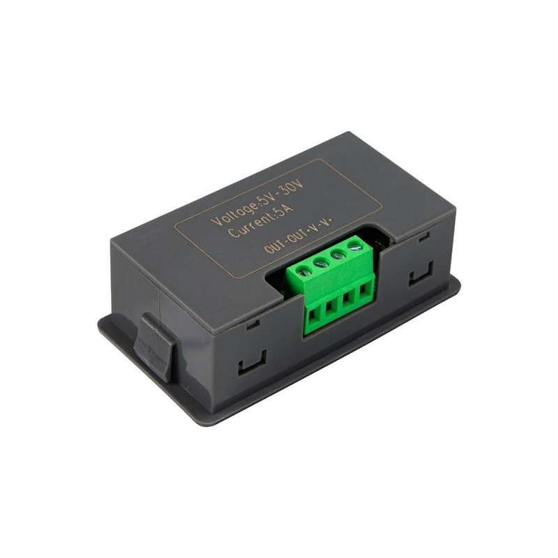 Impulss-tüüpi pöörlemiskiiruse regulaator mootoritele (PWM). Ühildub alalisvooluga DC-mootoritega, mille toitepinge on 5V kuni 30V. Mugav kiiruse reguleerimise viis (potentsiomeeter, mis on integreeritud lülitiga). Turvaline soft-start skeem kiirendab elektrimootorit aeglaselt potentsiomeetriga määratud väärtuseni, vähendades sellega kahjustuste ohtu. Kompaktne konstruktsioon on varustatud selge mõõtenäiduga ekraani ning LED-tulega, mis annab märku vastuvõtja sisselülitamisest või väljalülitamisest. Lihtne paigaldus, mis ei nõua jootmist.