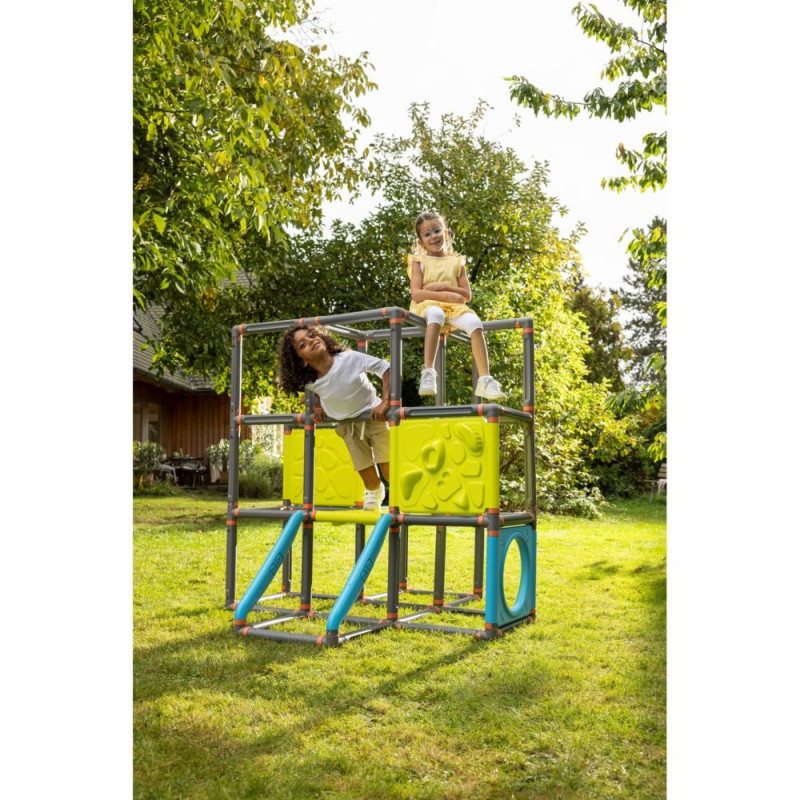 2-klikk süsteemiga saab ronimisraami kiiresti ja ilma tööriistadeta kokku panna. Samal ajal tagab süsteem maksimaalse stabiilsuse. 2-klikk süsteemi klambrite turvaline ühendus saab avada ainult täiskasvanud. Lisastabiilsust pakuvad komplektis olevad U-konksud, mida saab kasutada ronimisraami kindlalt maapinnale kinnitamiseks.
