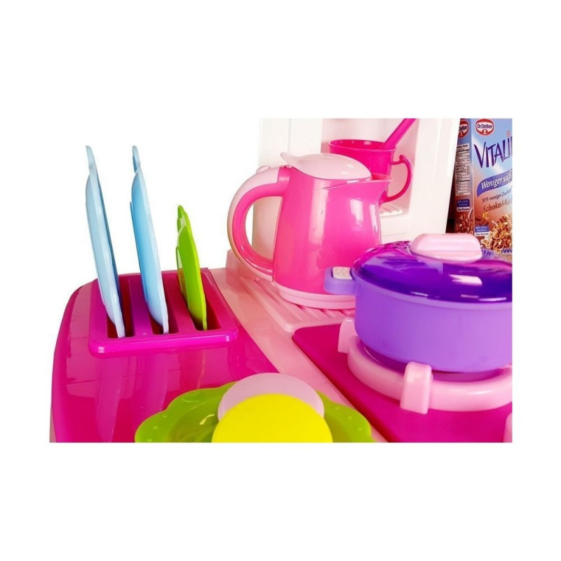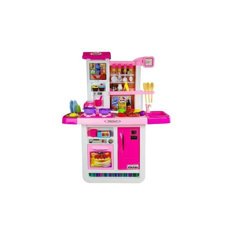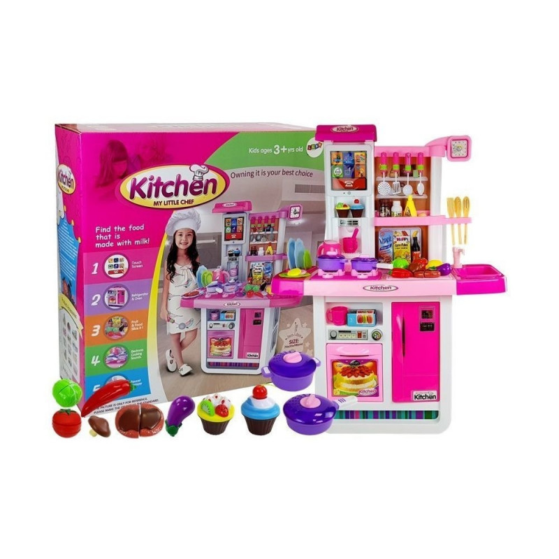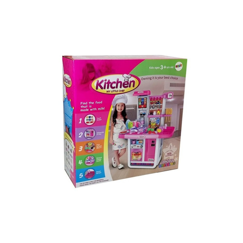 ? TOOTE OLULISED OMADUSED ? Valgustusega pliidiplaat heliefektidega – Kui pliidiplaadid sisse lülitada, kuuleb laps toiduvalmistamise hääli, mis viivad ta tõelise kokkamise maailma. ? Puutetundlik ekraan – Kaasaegne puutetundlik ekraan lisab mängule tehnoloogilist võlu ja kaasab lapse interaktiivsesse tegevusse. ? Kraanist tuleb päris vesi – Tänu funktsioonile, mis võimaldab kraanist vett võtta, tunneb laps end tõelise peakokana. ? Rikkalik tarvikute komplekt – Köök on varustatud köögitarvikute, söögiriistade, taldrikute, teekannu, pottide ning suure hulga toiduainetega, nagu puuviljad ja köögiviljad. Lisaks on toiduainetel takjapaelad, mis muudavad nende kinnitamise ja mängimise lihtsamaks. ? Külmkapp ja ahi – Köögil on sisseehitatud külmkapp ja ahi, mis võimaldavad veelgi rohkem rollimänge.