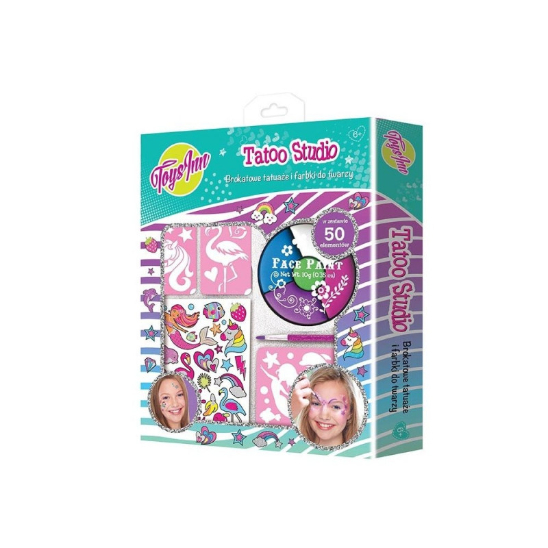 Näomaalingute komplekt, mis sobib ideaalselt lastepeole. Tänu kaasasolevatele šabloonidele ja sädelevatele tätoveeringutele saab iga animaator hõlpsasti luua ilusa tätoveeringu.