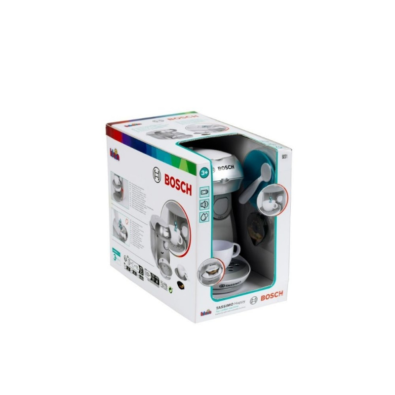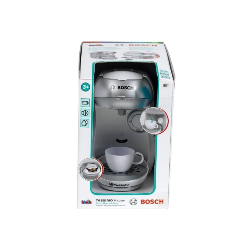 Klein Tassimo kohvimasin on Bosch’i litsentsiga, mis teeb sellest tõetruu koopia ettevõtte poolt toodetud päris seadmest. Klein on aastaid valmistanud päris majapidamisriistade ja -tarvikute koopiaid, mis on mõeldud lastele mängimiseks. Kohvimasin on hõbedast värvi. Nagu päris masinal, on ka sellel reguleeritava kõrgusega tilkumisalus, mida saab kohandada vastavalt kasutatava klaasi tüübile ja valmistatava kohvi liigile. Kohvimasinal on ka heliefekt, mis muudab mängu veelgi realistlikumaks. Korralikuks töötamiseks on vaja patareisid, mis ei kuulu komplekti. Kohvimasinal on ka avatav ülemine kaas mängukohvikapslite sisestamiseks ning mänguasi võimaldab ka päris vee voolamist. Lihtsalt vala vett kohvimasina ülemisel paneelil asuvasse veepaaki, seejärel vajuta suurt start/stop nuppu, et nautida kohvivalmistamise imitatsiooni. Komplekti kuulub üks tass ja alustass, hall lusikas ning kaks mängukohvikapslit – üks espressoks ja üks kohviks. See mängu Tassimo Bosch kohvimasin võimaldab igal lapsel turvaliselt ja lõbusalt oma vanemaid jäljendada. Masina suurus on ideaalselt kohandatud lapse vajadustele ja kätele. See mänguasi on kindlasti suurepärane täiendus teistele Klein’i köögikomplektidele. Tehnilised andmed: Toode on mänguasi. Mänguasi on mõeldud üle 3-aastastele lastele. Kaal: 0,9 kg. Pakendi mõõdud: 20 x 16 x 20 cm. Vajalikud patareid: 2 x AAA. Kogus karbis: 6. Päritoluriik: Hiina. KLEIN’i majapidamismänguasjade sari jäljendab realistlikult tuntumate ja kvaliteetsemate kaubamärkide päris seadmeid. See on tõeline maiuspala väikestele perenaistele! Lapsed armastavad õppida kodutöödes abistamist, samal ajal lõbusalt aega veetes. Iga köögiseade aitab valmistada kõike alates väikesest suupistest kuni gurmeepeoni nukkudele või sõpradele. Nende mänguasjade lisaboonuseks on see, et nende värvid sobivad nii tüdrukutele kui poistele.
