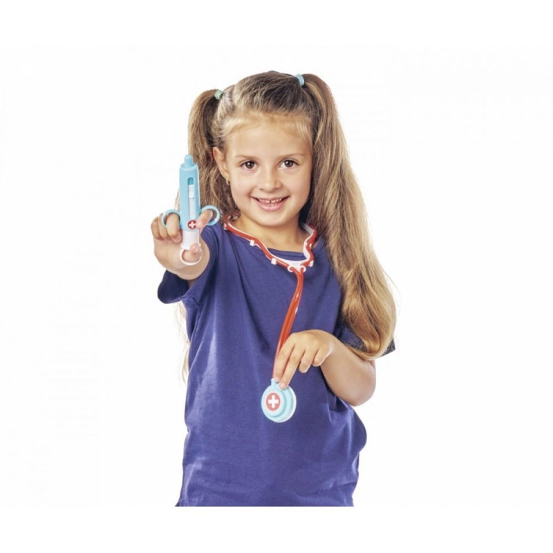 - 12-osaline komplekt – mänguarsti kohver sisaldab 12 vajalikku tarvikut: stetoskoop kuulamiseks, süstal, termomeeter, pintsetid, retseptiplokk, ravimid ja palju muud.