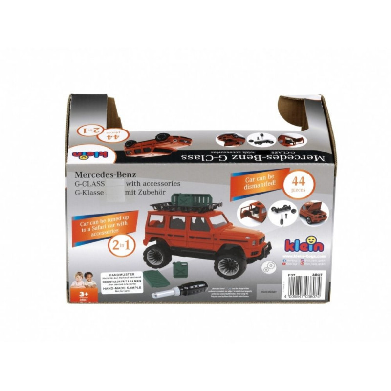 Mercedes-Benzi G-klassi kruvikeerajaga saab iga laps hakkajaks meistrimeheks ja tehnikahuviliseks! G-klassi AMG auto ja safariauto saab tänu praktilisele kruvisüsteemile lihtsalt kokku panna ja lahti võtta. See võimaldab luua uusi autosid või teha põnevaid parandustöid nagu tõeline mehaanik. Detailne Mercedes-Benzi stiilis disain lisab mängule luksuslikkust, samal ajal kui lapsed arendavad oma motoorseid oskusi ja tehnilisi teadmisi. Mänguasi on mõõtkavas 1:24, realistliku disaini ja paljude liikuvate osadega loovaks mänguks.