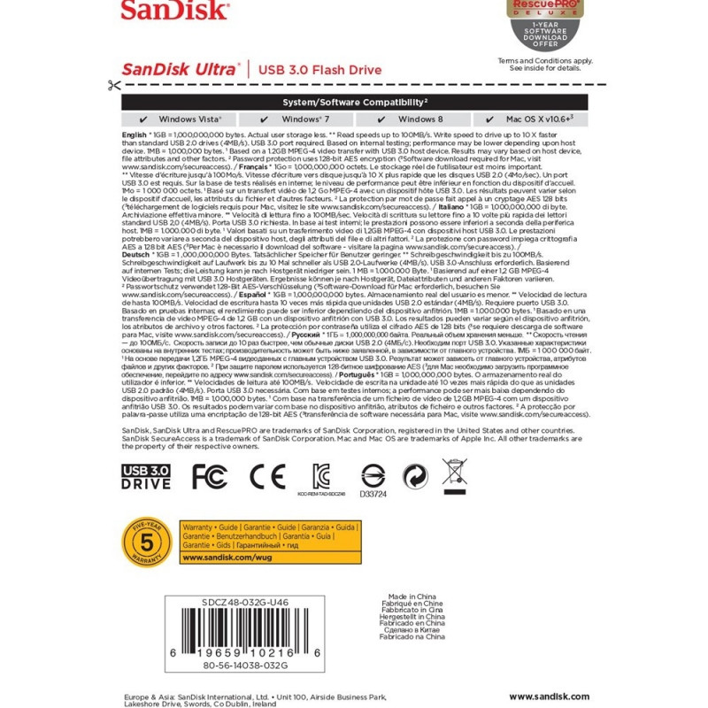 | Bundled software | SanDisk SecureAccess |