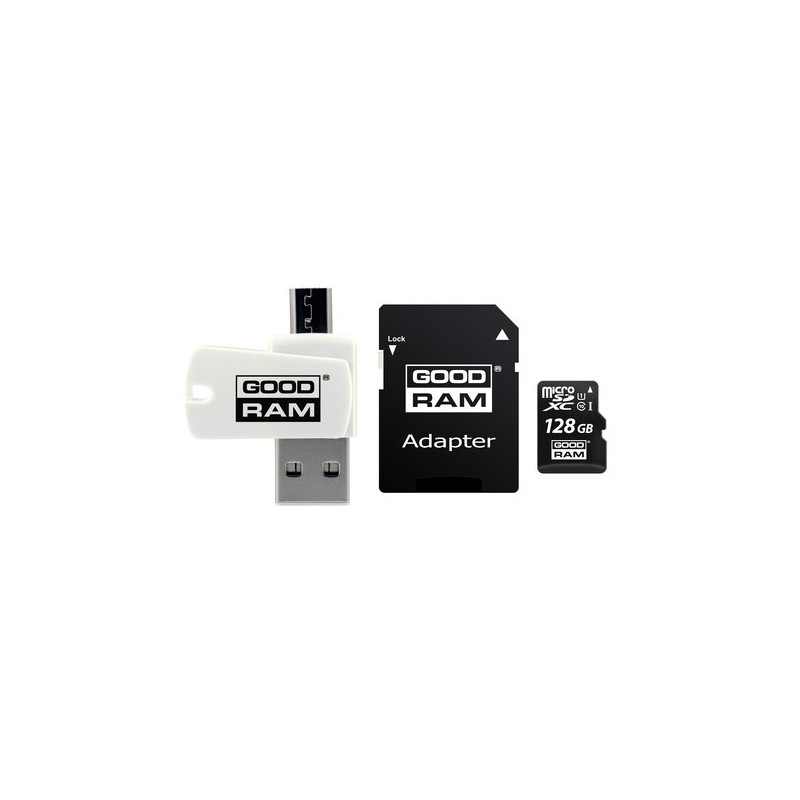 MicroSDHC card 128GB CL10 + adapter + reader