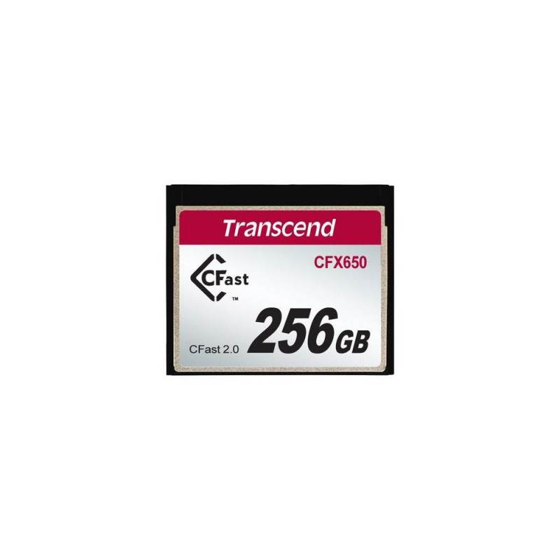 To meet the high data transfer demands of Ultra High Definition filmmaking, Transcend's CFast 2.0 CFX650 Memory Cards feature incredible read and write speeds of up to 510MB/s and 370MB/s respectively, and boast high storage capacities ranging from 128GB to 256GB. Designed to support high-end 4K cameras and recorders from leading manufacturers, CFX650 Memory Cards meet the latest CFast 2.0 specifications for extreme performance, making them well-suited for the professional cinematographer shooting high-resolution Full HD and 4K video.Transcend CFast 2.0 CFX650 256GB. Capacity: 256 GB, Flash card type: CFast 2.0, Internal memory type: MLC, Read speed: 510 MB/s, Write speed: 370 MB/s. Product colour: Black