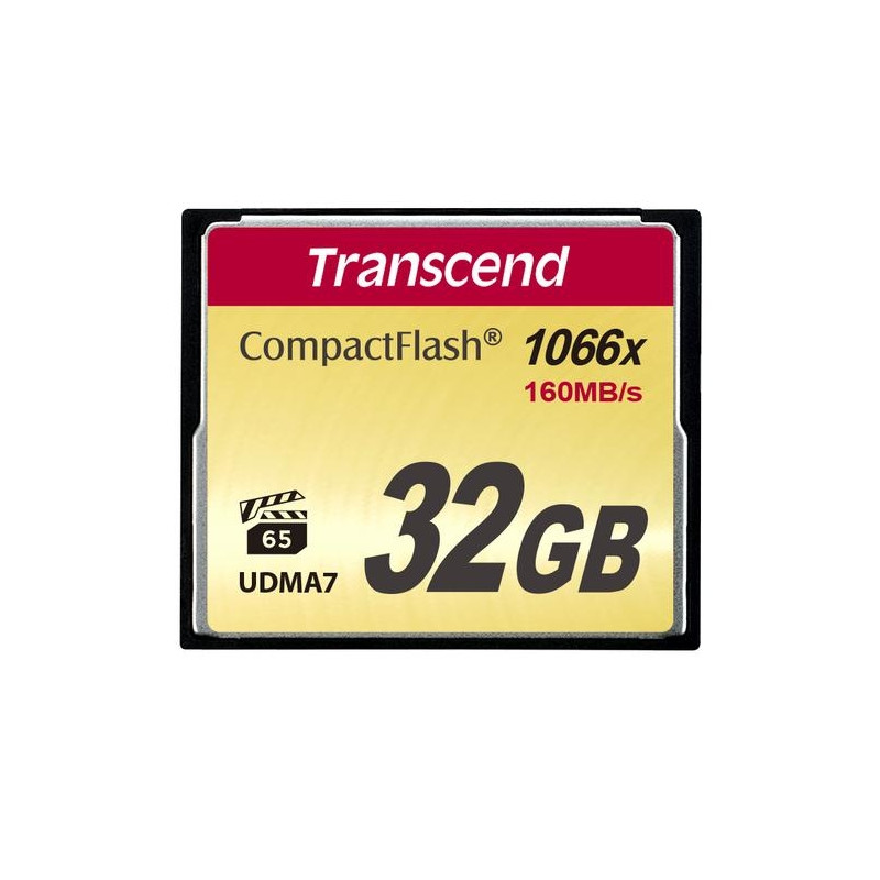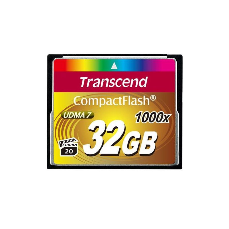 To ensure high-quality image and video capture with today's cutting-edge digital equipment, Transcend's CompactFlash 1000 memory cards meet CompactFlash 6.0 specifications, offering incredible high-speed performance and impressive storage space. The CompactFlash 1000 cards implement the Video Performance Guarantee (VPG-65) to enable professional-quality video recording without dropping frames, even in 3D. The top-tier MLC NAND flash chips inside are durable and reliable.<br><br><b>A trusted choice</b><br>Transcend's CompactFlash 1000 memory cards are manufactured with top-tier MLC NAND flash memory, making them durable and reliable. Ideal for use with advanced cameraholders and DSLR cameras for news, sports, wildlife, and action photography, these cards come in particularly handy during continuous burst mode shooting and lengthy Full HD, 3D, or even 4K UHDTV (2160p) video recording, offering professional photographers and videographers impressive transfer rates and stable video recording without dropping frames.<br><br><b>Shoot at amazing transfer speeds</b><br>Transcend's CompactFlash 1000 memory cards meet the VPG-65 (Video Performance Guarantee) standard to ensure a sustained minimum write speed of 65MB/s. With read/write speeds of up to 160MB/s and 120MB/s respectively, you can enjoy lag-free and cinima-quality Full HD, 3D, or 4K video.<br><br><b>Get larger storage capacity</b><br>With up to 128GB storage capacity, Transcend's CompactFlash 1000 memory cards allow for thousands of photos and tens of hours of Full HD videos to be recorded. Supporting UDMA7 (high-speed Ultra DMA transfer mode 7), the cards offer not only prompt response during fast-action burst mode shooting, but also fast storage of large images in the RAW format. Stay focused on capturing crucial moments, and let the memory card handle the rest.<br><br><b>Built for extremes<b><br>Transcend's CompactFlash memory cards are tested to withstand extreme conditions. The CompactFlash 1000 memory cards can operate in temperatures ranging from -25°C (-13°F) to 85°C (185°F), delivering the best performance and stability.<br><br><b>RecoveRx software</b><br>Transcend offers exclusive RecoveRx software, a free data recovery utility that allows you to search deep within a storage device for traces of erased files including digital photos, documents, music and videos.Transcend CompactFlash 1000x 32GB. Capacity: 32 GB, Flash card type: CompactFlash, Internal memory type: MLC, Read speed: 160 MB/s, Write speed: 120 MB/s. Product colour: Black