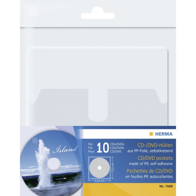 Herma CD/DVD-kotid isekleepuvad 1 CD/DVD jaoks 10 tk läbipaistev 7688