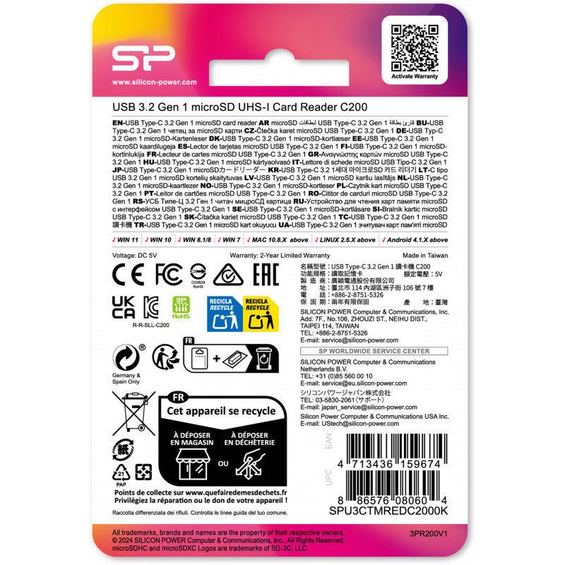 Silicon Power mälukaardilugeja C200 USB-C 3.2