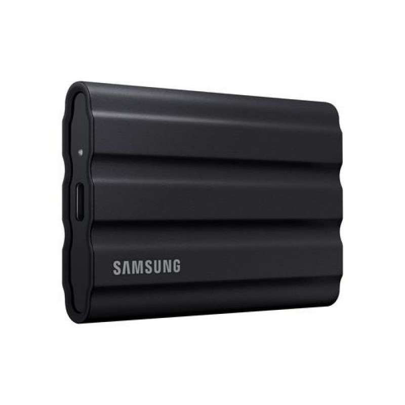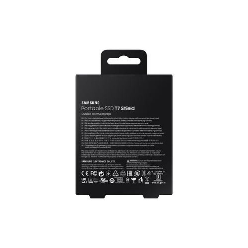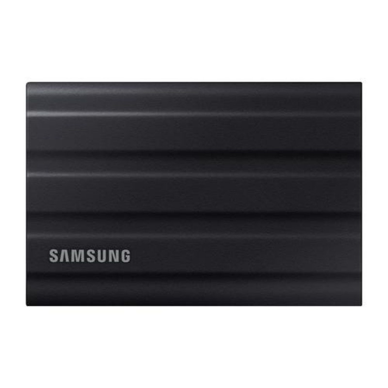 Rugged and durable<br>Supremely tough, fast, and compact, the new T7 Shield gives you superior performance on the go, even in challenging environmental conditions. Super-speed on the inside with durable protection outside, it keeps your work flowing wherever you are.<br><br>Create at full speed<br>Transfer huge files instantly. USB 3.2 Gen 2 and PCIe® NVMe™ achieve soaring sequential read/write speeds of 1,050/1,000MB/s for lag-free editing direct from the drive. The high-tech rubber exterior with Dynamic Thermal Guard controls heat to maintain steady performance even for giant projects.<br><br>Mighty tough<br>Ready for the rough and tumble. Shoot on location and wander the wild, while feeling confident your data is securely resistant against water and dust with an IP65 rating. The rugged design and advanced outer elastomer add extra durability to even endure a 3-meter drop.<br><br>For your life's devices<br>Effortlessly connect to the tech you use throughout the day: Macs, PCs, Android devices, gaming consoles, and more. Add portable convenience to every part of your life.<br><br>Go big with style<br>Take your pick. 1TB, 2TB or 4TB give you colossal space in sleek colourways of blue, beige, or black. The stylish rubberised grip prevents slips so it stays in your hands. Bring everything with you, and look great doing it.<br><br>Management software<br>Set your password and get the latest firmware updates with Samsung portable SSD software available in PCs, Macs, Android smartphones and tablets. You can also check your drive's health, boost performance and protect data with Samsung Magician Software.<br><br>World's No.1 Flash Memory<br>Experience the superior performance and reliability that you can only get from the world's number one brand for flash memory since 2003. All firmware and components including Samsung's world-renowned DRAM and NAND are produced in-house allowing end-to-end integration for quality you can trust.Samsung MU-PE4T0S. SSD capacity: 4 TB. USB connector: USB Type-C, USB version: 3.2 Gen 2 (3.1 Gen 2). Read speed: 1050 MB/s, Write speed: 1000 MB/s. Password protection. Product colour: Black