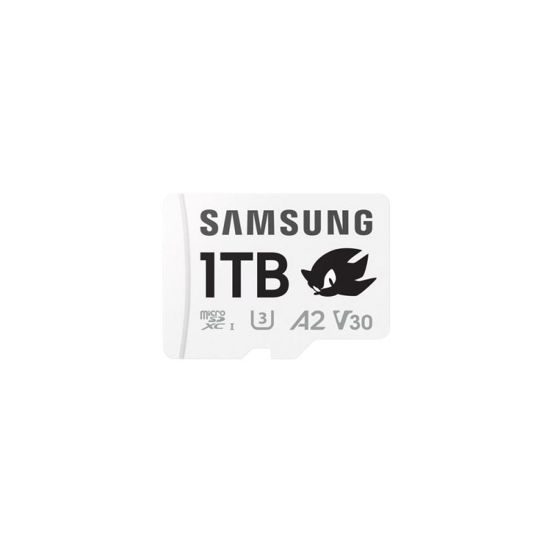 Gotta go faster<br>Wait less, play more with rapid sequential read and write speeds of up to 180 MB/s and 130 MB/s. Sprint through load screens and enjoy smooth transitions between games, thanks to A2 app performance designed for speed and convenience.<br><br>Room for every adventure<br>Plenty of room to fill in with what you love. Expand your game library to over 45 titles<sup>[1]</sup> with the vast 1TB capacity, and have space for high-resolution snaps and high-octane 4K videos.<br><br>The ultimate multi-device hero<br>Your dependable sidekick for gaming and content creation. With seamless compatibility across gaming consoles, action cams, and drones, this storage powerhouse is ready to expand the possibilities of what you can do.<br><br>Built to go the distance<br>6 pillars of protection for your data. No matter where your adventures take you, your data on the Sonic PRO Plus microSD card is protected from water<sup>[2]</sup> , extreme temperatures<sup>[3]</sup> , X-rays<sup>[4]</sup> , magnets<sup>[5]</sup> , drops<sup>[6]</sup> and wearout. Your irreplaceable experiences deserve reliable storage. And its all backed by a confident 10-year limited warranty.<br><br>Samsung Magician software<br>Unlock the full power of PRO Plus with Samsung Magician software - a user-friendly suite of management tools that facilitates optimal Memory card performance. Verify product authenticity, monitor drive health, and benchmark performance.<br><br>Bringing innovations to life<br>For decades, Samsungs NAND flash memory has powered groundbreaking technologiesthat have changed every part of our daily lives. This NAND flash technology also powers ourMemory Cards, making room for the next big push of innovation.<br><br>Sonic Speed<br>Experience Sonic-speed with sequential read speeds of up to 180 MB/s—enjoy fast loading and smooth gaming at your fingertips.<br><br>Spacious Storage<br>Expand your gaming world with up to 1TB of storage—enough space for your most epic adventures and numerous game saves.<br><br>Sonic Design<br>Bring the iconic world of Sonic the Hedgehog into your pocket with officially licensed microSD cards featuring bold designs of Sonic, Shadow, Tails, and Knuckles.Samsung MB-MD1T0S. Capacity: 1 TB, Flash card type: MicroSDXC, Flash memory class: Class 10, Internal memory type: UHS-I, Read speed: 180 MB/s, Write speed: 130 MB/s, UHS Speed Class: Class 3 (U3), Video Speed Class: V30. Protection features: Drop proof, Magnet proof, Temperature proof, Waterproof, X-ray proof, Product colour: Black, Grey, White