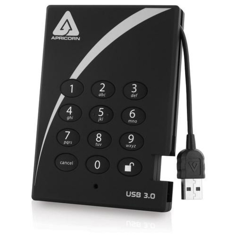 <b>Portable Security for your Data at the Speed of USB 3.0</b><br>With real-time AES hardware encryption, software free design and a super speed USB 3.0 connection, you can secure your data faster than ever before.<br><br>Looking for an effortless way to secure your data while taking advantage of the fastest USB 3.0 speeds? Look no further than the Aegis Padlock 3.0, the latest and fastest of Apricorn's Secure Drive line. With the same easy-to-use keypad design and software free setup, the Aegis Padlock 3.0 enables you to access the drive with your own unique pin but now at data transfer speeds of up to 5Gbps.<br><br><b>Utilizes Military Grade FIPS PUB 197 Validated Encryption Algorithm</b><br>Featuring your choice of AES-XTS 128 or 256-bit hardware encryption, the Aegis Padlock 3.0 seamlessly encrypts all data on the drive in real-time, keeping your data safe even if the hard drive is removed from its enclosure.<br><br><b>Super fast USB 3.0 Connection – Data transfer speeds up to 10X faster than USB 2.0</b><br>With a super speed USB 3.0 interface, you can now access your files faster than ever before. The Aegis Padlock 3.0 is also backwards compatible with USB 2.0 and 1.1 ports.<br><br><b>Software Free Design – With no admin rights to contend with the Aegis Padlock is a breeze to implement</b><br>With no software installation required for setup or operation and the ability to run on any platform, the Aegis Padlock 3.0 provides stress free deployment in corporate environments. The Aegis Padlock can be configured with independent Admin and User PINs. The Administrator Feature allows enrollment of up to five unique User ID’s and one Administrator. If the User forgets their PIN, the drive can be unlocked using the Admin PIN.<br><br><b>Drive Reset Feature</b><br>The Aegis Padlock 3.0 also employs a useful drive reset feature, which can be implemented with a unique command. This clears all PINs and data, and creates a new randomly generated encryption key, enabling the drive to be reset and redeployed as many times as needed.<br><br><b>Auto-lock Feature</b><br>The unattended Aegis Padlock 3.0 can be configured to lock after a pre-determined amount of time of your choosing. Ideal for protecting your data when you’re away from your desk.<br><br><b>Data at Rest Protection</b><br>All data, PINs, and encryption keys are always encrypted while at rest.<br><br><b>Brute Force Self Destruct Feature</b><br>The Aegis Padlock uses a three pronged approach to protect against a Brute Force attack. The first step is to deny access to the drive until the drive can verify the user PIN. After several incorrect attempts the drive will lock itself, requiring the drive to be plugged in again to input a PIN. This feature blocks automated attempts to enter PIN numbers. Lastly, after a predetermined number of failed PIN entries, the Padlock assumes it is being attacked and will destroy the encryption key and lock itself, rendering the data useless and requiring a total reset to redeploy the Padlock.<br><br><b>Wear Resistant Key Pad</b><br>Designed with protection in mind, the entire Aegis Padlock family incorporates ‘wear resistant’ keypads to hide key usage and avoid tipping off a potential hacker to the commonly used keys.<br><br><b>VTC Technology</b><br>Protection against hacker attempts doesn’t stop with Brute Force. Incorporated into the Aegis Padlock’s electronics is Apricorn’s Variable Time Circuit (VTC) technology, working to thwart “timing attacks” aimed at accessing the drive by studying the behavior and infiltrating the Padlock’s electronics.<br><br><b>Compact, Rugged Design – Perfect for taking your data on the road</b><br>The Aegis Padlock’s low powered design is perfect for using with notebooks and taking your data on the road. Perfectly pocketable, the Aegis Padlock’s compact, robust design features a 16-point omni-directional shock mounting system and rubberized paint, protecting the drive from drops and knocks. The convenient integrated USB 3.0 cable eliminates the need to carry around cords with you and allows you to be connected at the flick of a fingertip.Apricorn Aegis Padlock USB 3.0 500GB. HDD capacity: 500 GB. USB version: 3.2 Gen 1 (3.1 Gen 1). HDD speed: 5400 RPM. Product colour: Black