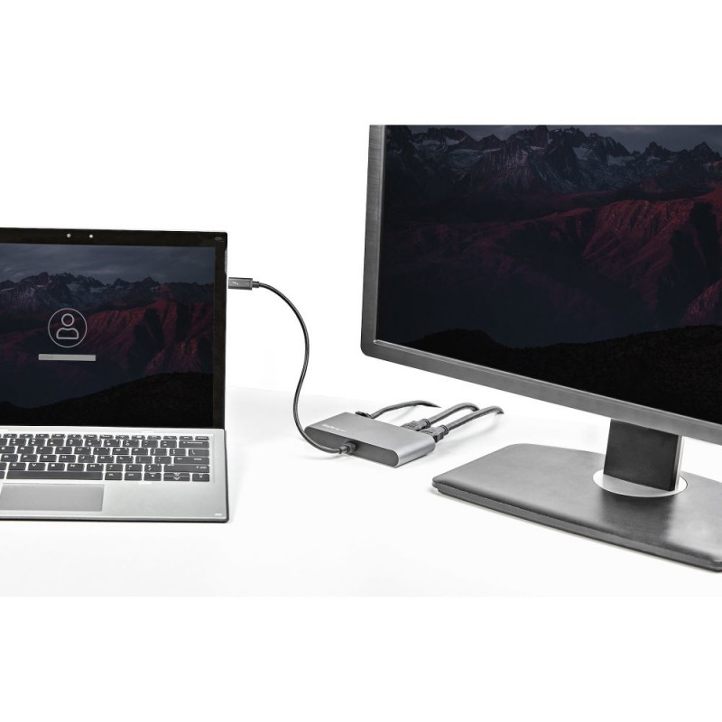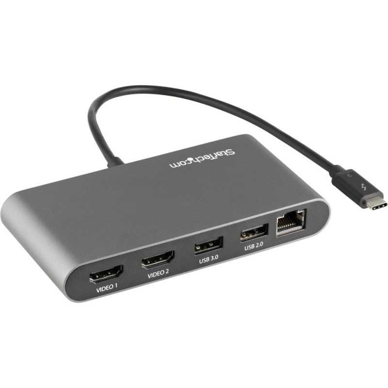 StarTech.com Thunderbolt 3 Mini dokkimisjaam – Kaasaskantav dokkimisjaam kahele monitorile, HDMI 4K 60 Hz – 2x USB-A jaotur (3.2/2.0), GbE – 28 cm kaabel – TB3 mitme pordiga adapter – Mac/Windows. Ülekandetehnoloogia: juhtmega, hostiliides: Thunderbolt 3. Etherneti LAN andmeedastuskiirused: 10, 100, 1000 Mbit/s, võrgustandardid: IEEE 802.3ab, IEEE 802.3i, IEEE 802.3u. Toote värv: hall, maksimaalne digitaalne eraldusvõime: 3840 x 2160 pikslit. Toetatud Windowsi operatsioonisüsteemid: Windows 10, Windows 10 Education, Windows 10 Education x64, Windows 10 Enterprise, Windows 10..., Toetatud Maci operatsioonisüsteemid: Mac OS X 10.10 Yosemite, Mac OS X 10.11 El Capitan, Mac OS X 10.12 Sierra, Mac OS X 10.13 High..., Toetatud serveri operatsioonisüsteemid: Windows Server 2008 R2, Windows Server 2012, Windows Server 2012 x64. Laius: 69 mm, sügavus: 124 mm, kõrgus: 27 mm