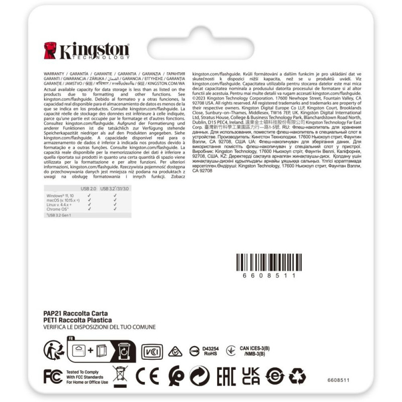 Kingston Technology DataTraveler 512GB 220MB/s metallist USB-mälupulk 3.2 Gen 1 SE9 G3 Mahutavus: 512 GB Seadme liides: USB Type-A USB-versioon: 3.2 Gen 1 (3.1 Gen 1) Lugemiskiirus: 220 MB/s Kirjutamiskiirus: 100 MB/s Vormitegur: Ilma korgita Kaal: 15,18 g Toote värvus: Kuldne